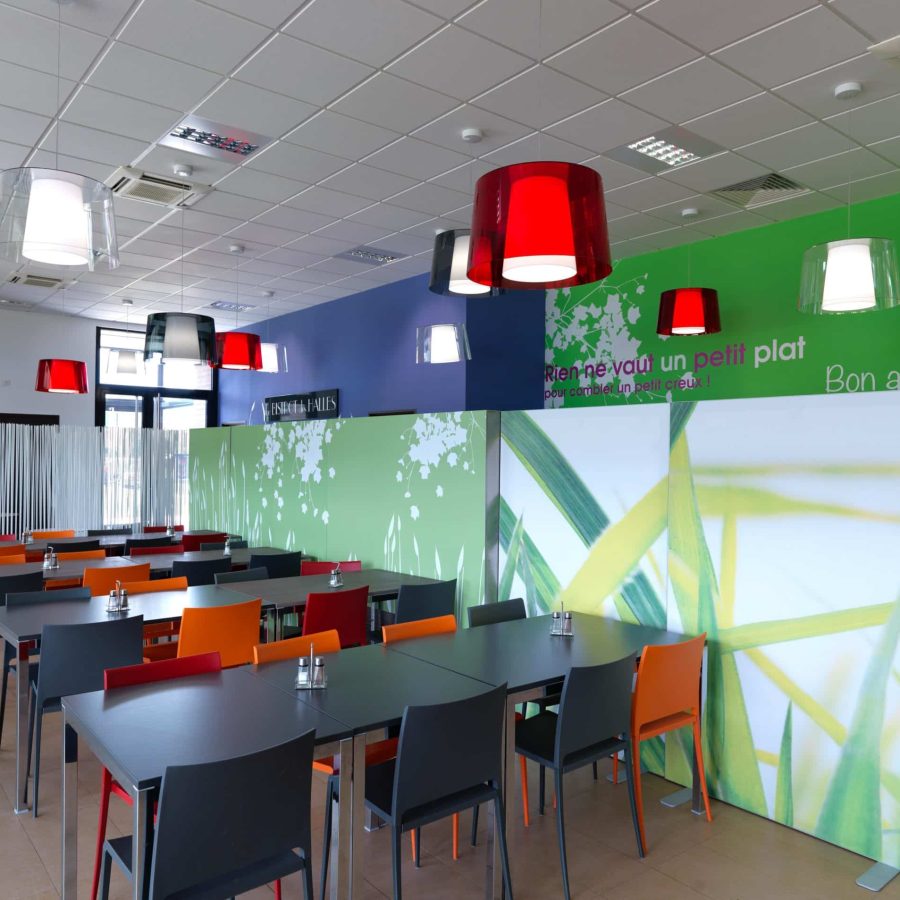 Tous les projets n’imposent pas les mêmes contraintes esthétiques ni acoustiques. C’est pourquoi les cadres ALYOS® se déclinent dans une large variété de formats, de finitions et de configurations. Pour les espaces où le traitement mural classique est limité, ils s’associent parfaitement à un mur toile tendue, créant un ensemble visuel homogène et absorbant.