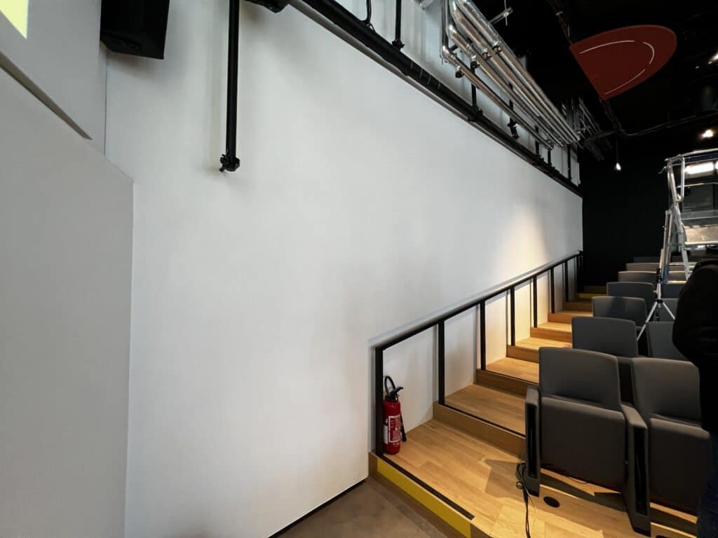 Pour une cloison mitoyenne ou un studio, un mur toile tendue acoustique avec un absorbant réduit efficacement le bruit et améliore la qualité sonore des échanges.
