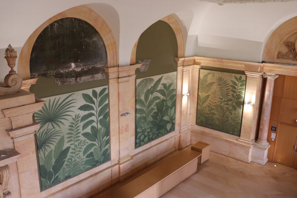 En complément, huit cadres acoustiques en toile imprimée ont été intégrés aux murs. Leur conception graphique, adaptée à l’identité du lieu, participe à la fois au traitement acoustique et à la valorisation esthétique de la salle.
